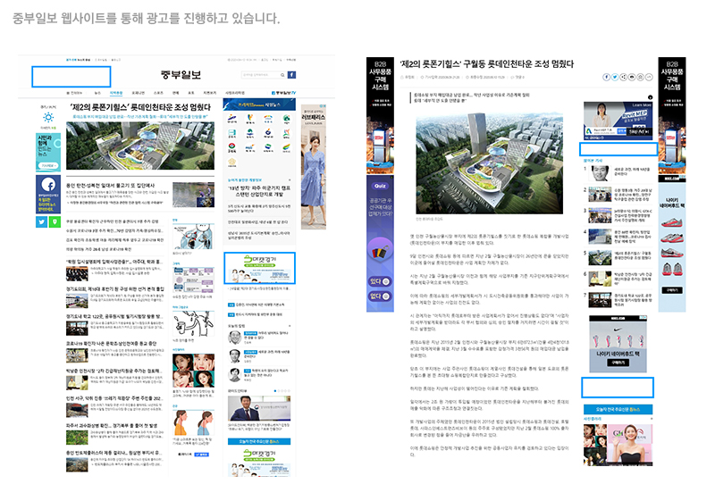 인터넷배너 게재위치 기간 규격 광고료 V.A.T 합계 메인화면 상단 1개월 230*40 pixels 15,000,000 1,500,000 16,500,000 메인화면 좌측 420*100ixels 10,000,000 1,000,000 11,000,000 메인화면 우측 300*100pixels 8,000,000 800,000 8,800,000 기사화면 우측 250*120pixels 5,000,000 500,000 5,500,000 ※ 월정 금액이며 규격 및 광고비용은 협의 가능합니다